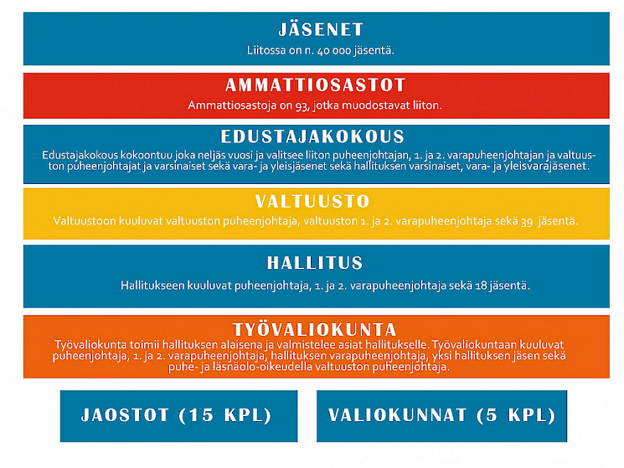 Hallitus on nimennyt avukseen edunvalvontaa varten 15 ammattialajaostoa. Jaostot valmistelevat alansa kehittämiseen ja erityisesti työehtosopimusneuvotteluihin liittyviä asioita.